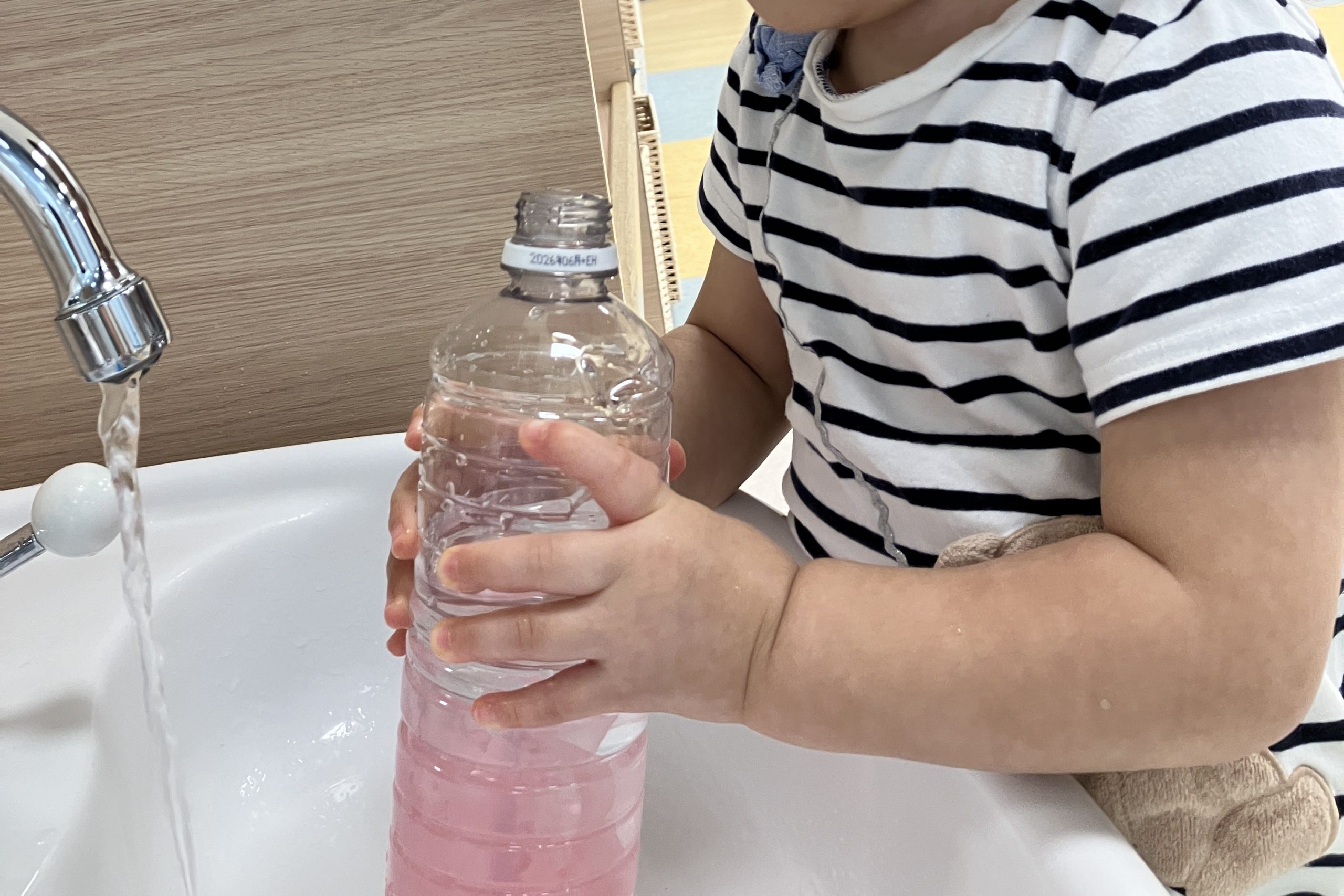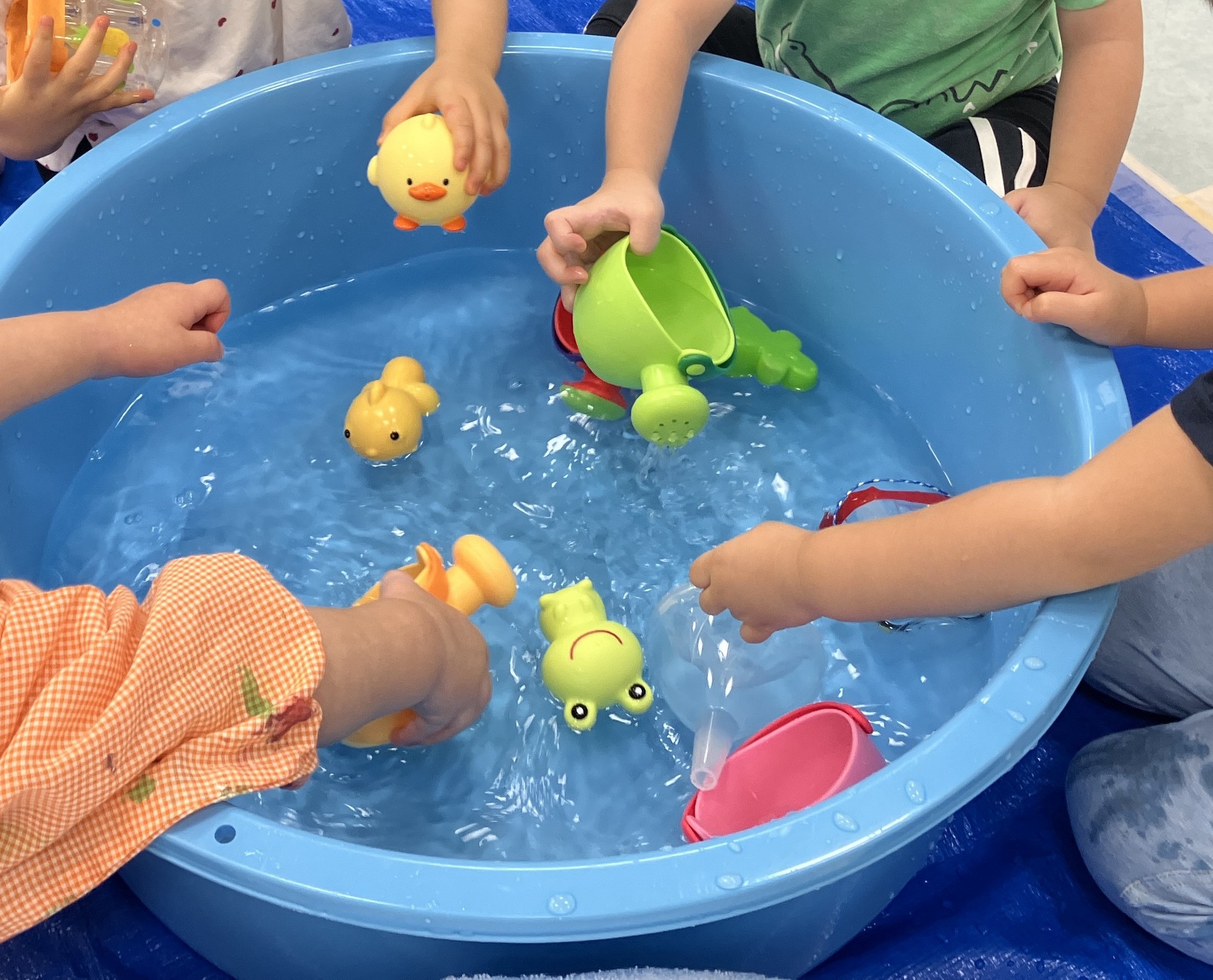 水に濡れるたびに「キャッキャッ」と喜んでいました。