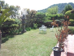 くつろぎと安心感のある邸宅サロン 高台にある庭からは大阪湾が一望できる