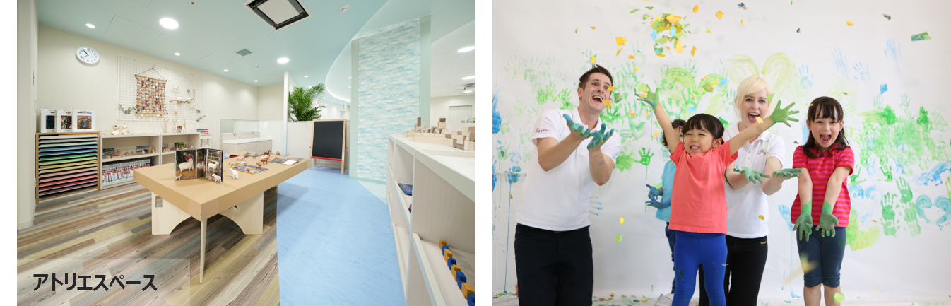 お子様たちが安全に過ごしながら、想像力をかき立てるおもちゃや本に触れたり、アトリエスペースで自由に創作をしたりと、のびのびと過ごせる環境を提供します。