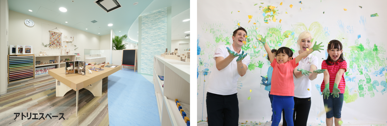 お子様たちが安全に過ごしながら、想像力をかき立てるおもちゃや本に触れたり、アトリエスペースで自由に創作をしたりと、のびのびと過ごせる環境を提供します。